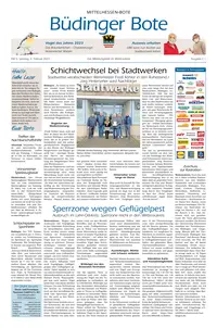 Das Wochenblatt Büdinger Bote erscheint wöchentlich am Samstag.